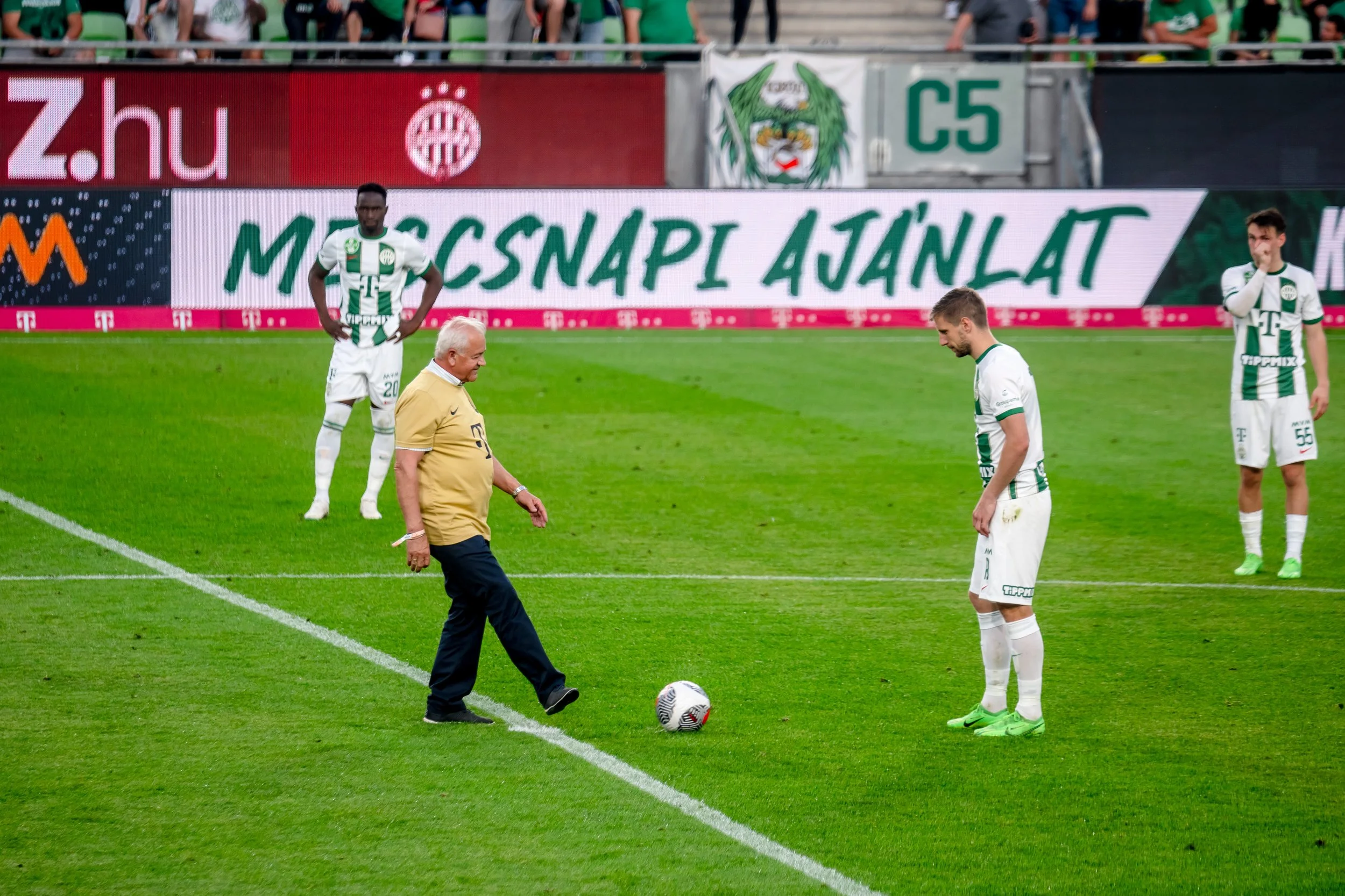 Szurkolóinknak a Groupama Arénában lehetősége van a kezdőrúgás - első, illetve második félidei - elvégzésére csapatunk hazai bajnoki meccsein. A kezdőrúgás ideális ajándék lehet szülinapra, évfordulóra, vagy bármilyen alkalomra minden igazi fradistának. Az élményről fotó is készül az, amit klubunk biztosít a kezdőrúgó számára. Ez azonban még nem minden, hiszen az élmény mellé VIP belépőt, eredeti Fradi mezt és ingyenes parkolási lehetőséget is biztosítunk a kiválasztott mérkőzésnapon.A kezdőrúgások három különböző mérkőzéskategóriában, 1. illetve 2. félidei csomagban kerülnek értékesítésre. Felhívjuk figyelmüket, hogy ajánlatunk a készlet erejéig érvényes!A befolyó összeget az FTC az utánpótlás-nevelésre fordítja.
